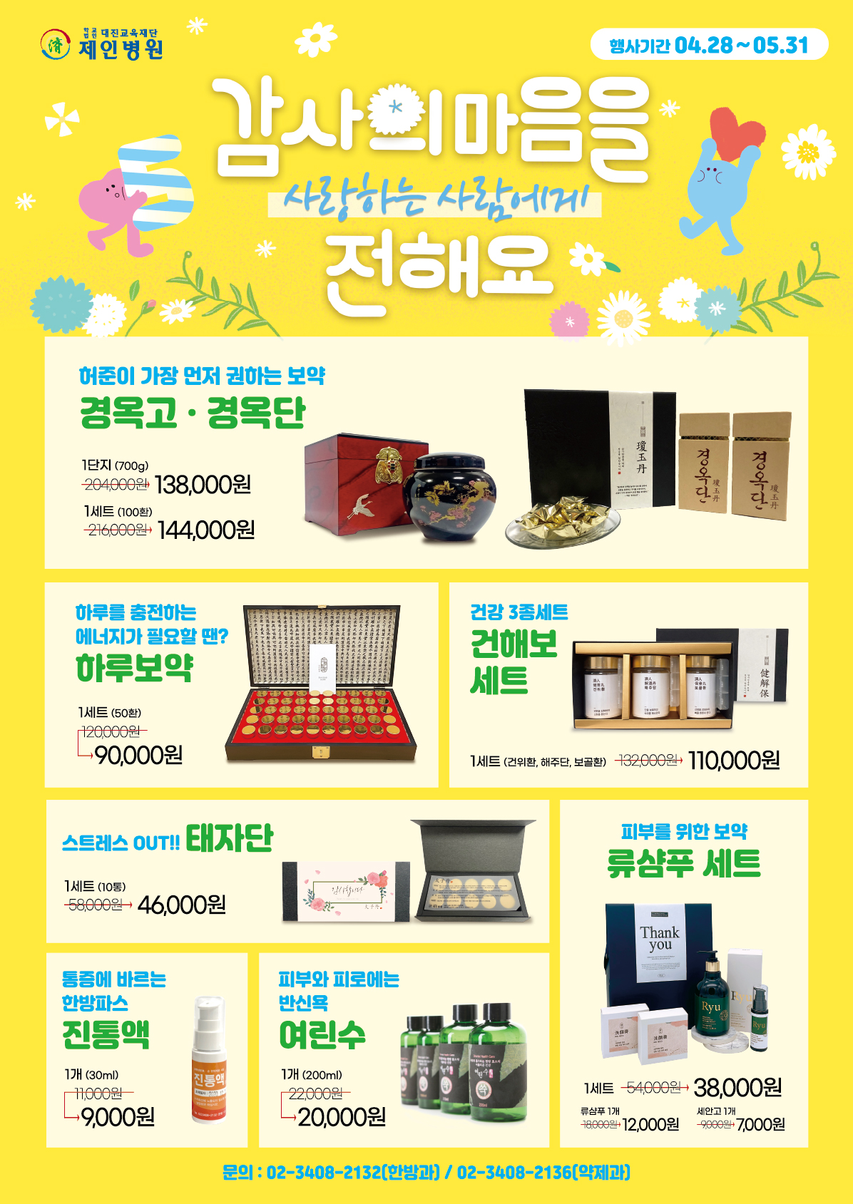 구매 문의는 한방과 02-3708-2132 / 약제과 02-3408-2136 으로 부탁드리겠습니다!